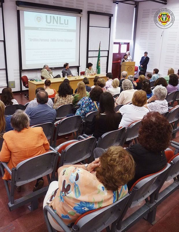 Isabel Mignone, hija de Emilio, expresó: “para nosotros es un día muy emotivo, porque hace muchos años estamos trabajando en esta donación organizando los materiales, y hoy a un año de haber hablado con el Rector anterior se ha concretado la donación en un tiempo sumamente acelerado y de una forma muy prolija» a la vez que comentó al auditorio: “tuvimos ofrecimientos de varias universidades que estaban muy interesados en la donación del material, pero nosotros sabiamos que papá hubiera querido que vinieran acá, mi mamá también lo expresó, quiero que los materiales vayan a Luján»