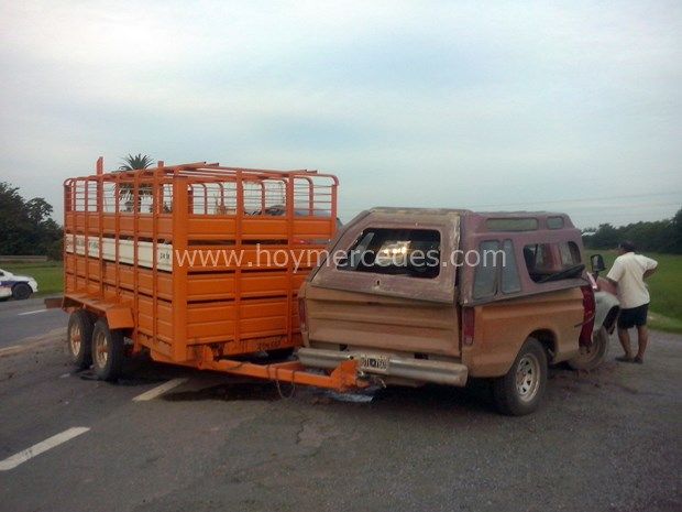 Durante la tarde de éste lunes se vivió el cuarto accidente de las últimas 24hs en la jurisdicción de nuestra ciudad. En esta ocasión se trató de un Peugeot conducido por un matrimonio de la localidad de Junin y una camioneta con un tráiler cargado de animales de nuestra localidad.