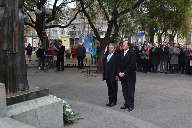 La celebración se realizó en el Monumento de la Plaza San Martín, primero se ofreció un desayuno en donde se les invitó chocolate caliente a los presentes en el Salón del Honorable Concejo Deliberante y luego todos se trasladaron al centro de la plaza para llevar adelante la colocación de ofrendas florales.