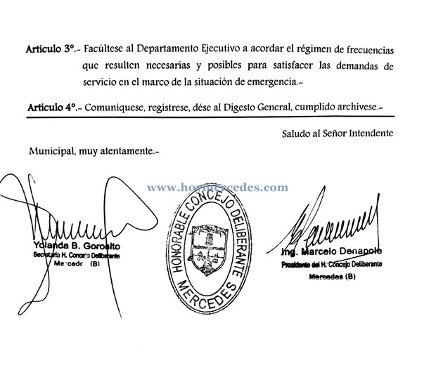 A continuación la ordenanza, aún no pormulgada, pero pronto a serlo, de lo aprobado por el Cuerpo Deliberativo.