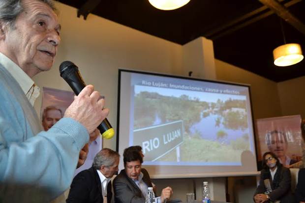 La Forgia expuso cuadros, estadísticas e imágenes de las últimas crecidas-muchas de ellas aportadas por la Municipalidad de Mercedes, y cuestionó lecturas que se hacen del flagelo. Por ejemplo, criticó que se habla de «canales clandestinos», además de manifestar su oposición a proyectos urbanísticos que «se instalan al borde del río”. En determinado momento de la exposición de La Forgia, Solá le pidió que contara cuáles eran las soluciones que se planteaba el sector para aminorar el impacto de las inundaciones. Para ello, el asesor en materia de hidráulica se apoyó en un texto que indicaba lo siguiente: «Cuenca superior: reservorios reguladores del caudal emplazados aguas arriba de la ciudad de Mercedes y aguas arriba de la ciudad de Luján. Cuenca media: rectificación cauce desde Luján al Canal Santa María. El cauce es sumamente sinuoso y errático fundamentalmente desde Pilar, debido a la pequeña pendiente de este tramo. Rectificación, ensanche del cauce y construcción del área de expansión y reservorio del excedente de aguas, preservando los humedales. Cuenca inferior: rectificación, ensanche y dragado. Las salidas de las aguas fueron alteradas no sólo por los estrechamientos y la falta de dragado sino también, por las modificaciones hidráulicas producidas por los canales aliviadores del río Luján y modificación de la desembocadura del Río Reconquista hacia el Río de la Plata», detalló.