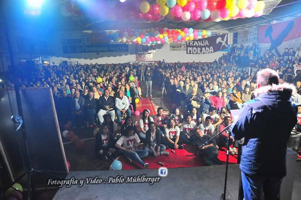 Una cancha de básquet repleta fue la escena que veía Lucas Fal desde el escenario cada vez que emitía una palaba. Estuvo acompañado no sólo por los integrantes de su lista, sino, también, por algunos de los que podrían eventualmente componer su gabinete en caso de erigirse como intendente.
