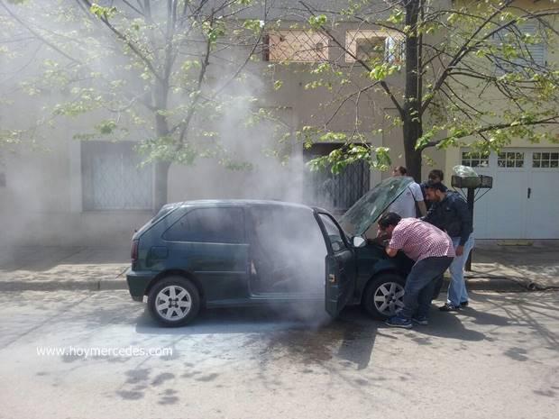 Un choque y un incendio vehicular dieron un color distinto a la jornada teñida por las elecciones. En calle 38 casi esquina 21 se incendió un Volkswagen Gold donde se logró apagar a instancias de los vecinos y el propietario del auto. Baldazos y mata fuegos permitieron apagar el incendio que se veía en el tablero principalmente.
