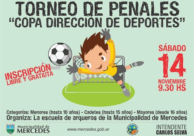 El sábado 14 de noviembre a las 9.30hs en el Polideportivo a cielo abierto del ex Instituto martín Rodríguez se realizará el Torneo de Penales en Pareja “Copa Dirección de Deportes”.
