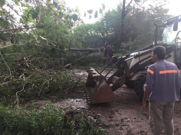 Finalizada la tormenta el área de servicios públicos se movilizó con un amplio despliegue que incluyó camiones, tractores, pala mecánica y más de 20 personas.