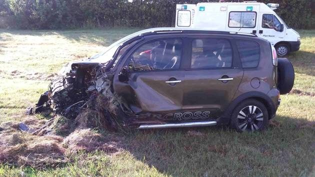El siniestro se habría producido cuando un automóvil Citroen Air cross, color verde oscuro, dominio NBY-805, conducido por Pablo Díaz, que viajaba acompañado por Julio González. Este vehículo se dirigía a Chivilcoy desde Lomas de Zamora. Al bajar del puente ubicado sobre el arroyo Los Ranchos pierde el control del vehículo al pisar la banquina, saliendo despedido hacia la mano contraria donde impacta violentamente contra el lateral izquierdo de una pick up Chevrolet S10, color gris, dominio GRD 902, conducida por Hugo Ballaespil , quien iba acompañado por su esposa Estela Díaz y se dirigían desde la ciudad de 9 de Julio hacia Ezeiza. Producto del violento impacto entre los dos vehículos, la S-10 queda detenida sobre la banquina con sus dos ocupantes atrapados en su interior; en tanto, el Citroen Air Cross, se despista con serios daños quedando en la zona de préstamo.