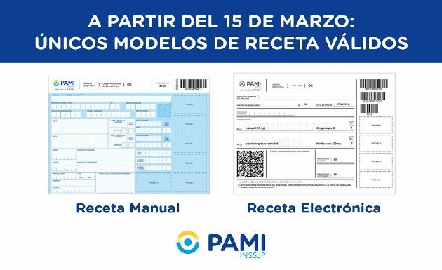 A partir del 15 de marzo el PAMI cambiará el modelo de sus recetas para la prescripción y dispensa de medicamentos. De acuerdo a la información brindada por el responsable actual de PAMI Mercedes, la receta electrónica (color blanco) y la receta manual (color celeste) serán los únicos modelos de recetas válidos desde dicha fecha.