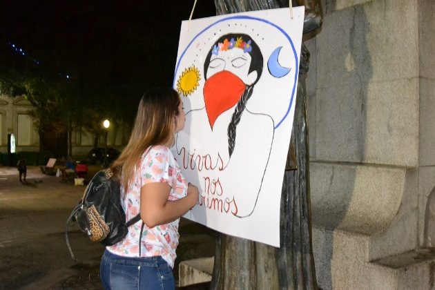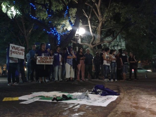 Un poco más tarde, en el mismo espacio público. Se congregaron el Movimiento Evita, CTEP, la Multisectorial MADRe y artistas que hicieron en vivo intervenciones artísticas en relación a la violencia de género y al pedido para que se terminen los femicidios.