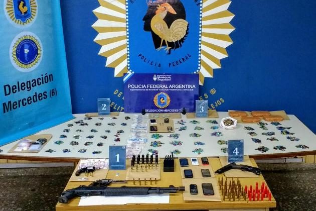 La Delegación de Mercedes de la Policía Federal realizó un procedimiento por infracción a la Ley 23.737 en la localidad de General Rodríguez. Secuestrando drogas. armas de fuego con municiones, grandes cantidades de dinero en efectivo y celulares, entre otros elementos. En los distintos allanamientos se detuvieron a seis personas mayores de edad.