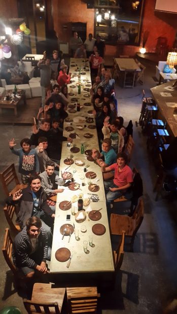 Festejaron cenando unas pizzas en Alaraka con varios de sus alumnos actuales y, también, varios ya universitarios junto a algunos padres.
