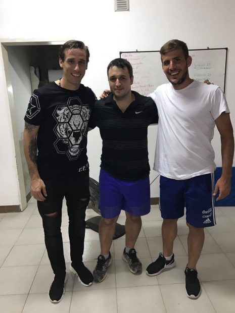 Lucas Biglia, después de jugar con la Selección el partido de Argentina 1 Chile 0 en el estadio Monumental y Poto Jauregui, con Gimnasia de La Plata, se encontraron en Entrenar Es Vida con el profesor Federico Achille para realizar trabajos renegerativos.