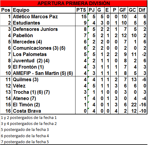 Goles en el ST: A los 20’ Jorge Montiel de penal, 39’y 45’ Facundo Herrera para Atlético Marcos Paz. A los 25’ Deivy González para Estudiantes.