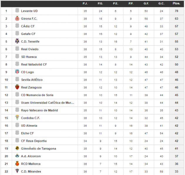 Mallorca, que a principio de temporada pensaba en volver a Primera División en España, ahora sufre con no irse a la Segunda División B, ya que tras haber levantado cabeza a mitad de campeonato, volvió a decaer en los resultados y ahora se encuentra en puestos de descenso a lo que en el país ibérico es la tercera categoría.