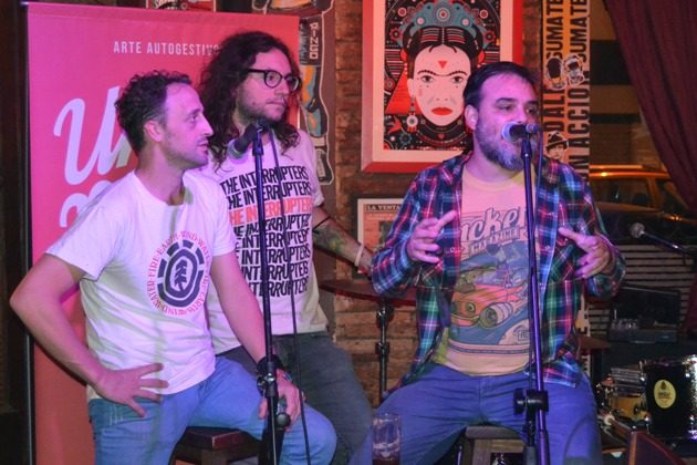 Santi Suarez, Rulo Godar y Marcos Porcar fueron parte de la organización del evento y los encargados de darles le bienvenida y sintetizar la idea central ante los presentes que se dieron cita en Vinilo Bar de Quique Fauri, quien además como dj y propietario de una disquería ayudó a varias bandas locales a difundirse.