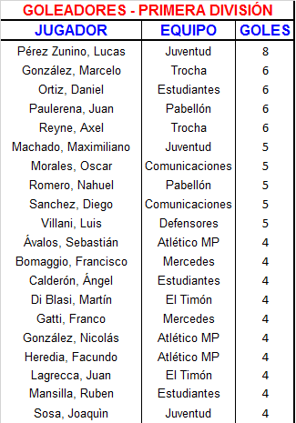 | El Timón | 4 | Di Blasi (2) y Lagrecca (2) |