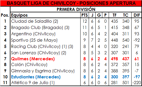 QUILMES (M) 95 (Mac Cormack 21, S. Cejas (C) 20, Juarez 16, Rojas 8, Perdomo 6, A. Vallejos 5, Manganiello 5, Bozzini 5, Zumpano 4, Salvo 3, Mustoni 2, M. Maldonado) (DT: J. L. Giallorenzo)