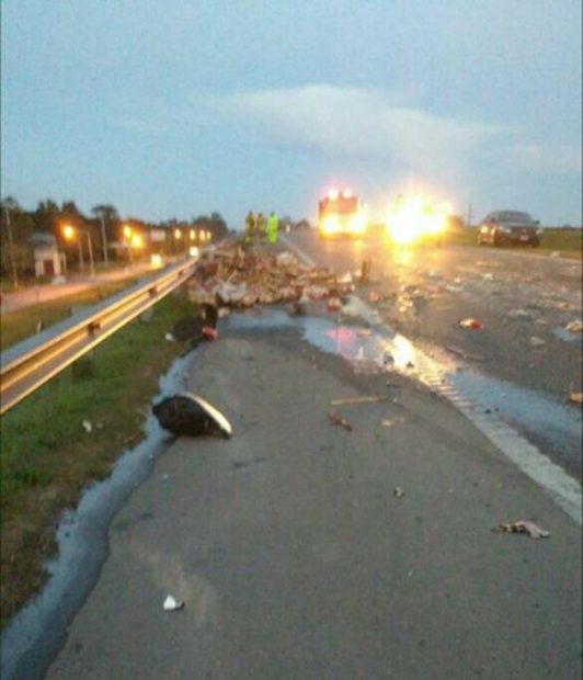 Una ambulancia que provenía de la localidad de Trenque Lauquen se dirigía hacia Capital Federal trasladando una paciente que había sido trasplantada y que tenía una buena recuperación, informaron, y se disponía a un control médico por la mencionada intervención. El vehículo fue el que impactó con la parte trasera de un camión Mercedes Benz de carga que circulaba en el mismo igual sentido: Mercedes-Luján. El camión transportaba pollos que fueron retirados de la cinta asfáltica y restituidos a la empresa propietaria.