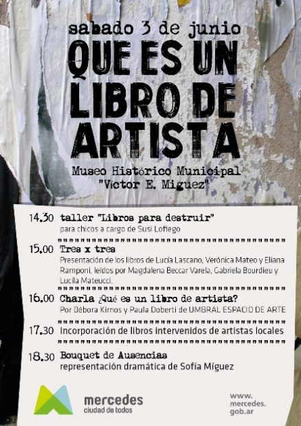A las 16, las curadoras de la muestra, Debora Kirnos y Paula Doberti, darán una charla para contarnos de este mundo de libros intervenidos. “¿Que es un libro de artista?”. Y a las 17.30 hs se incorporan a la muestra, los libros intervenidos de artistas locales: Pablo Russo, Laura Parra, María Eugenia Scioli, Mirta leyes, Marcela Cueto, Anabel Piñeiro, Luciana Aguiar y Pablo Rodríguez.