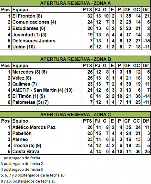 En la Zona B, son cuatro los equipos con serias chances de ser el mejor de la zona e incluso el mejor segundo, mientras que en la Zona C, ya Trocha y Costa Brava quedaron sin posibilidades, mientras que Marcos Paz, Pabellón y Ateneo están en plena lucha, con la particularidad que, pensando en ser el mejor segundo, tienen que jugar menos partidos que los de las otras zonas, ya que no adeudan.