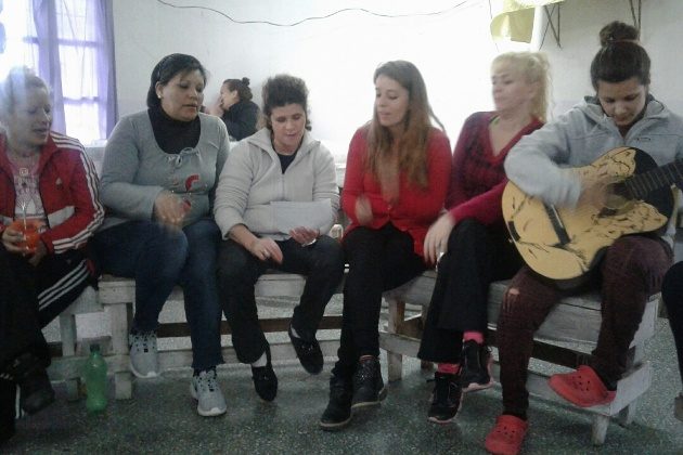 Entre las 22 internas que participaron, escribieron una canción y Lucia le fue poniendo ritmo con la guitarra, y junto a la coordinadora de este taller, la responsable de la Oficina de Pre Egreso del Patronato de Liberados Celeste Burone con sus bongo. Así, de manera grupal, llegaron a una muy representativa canción de las vivencias de las internas.