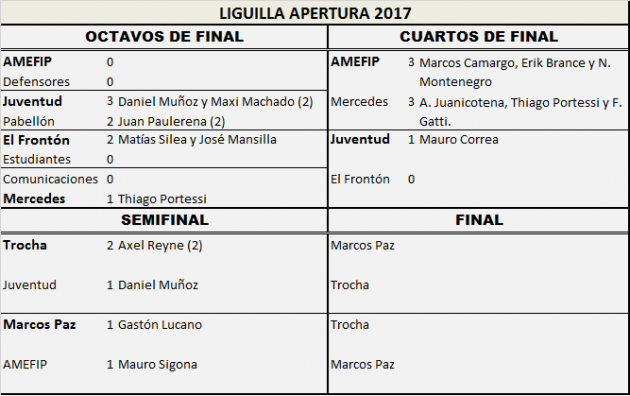 En cancha de la Liga Mercedina se jugaron las dos semifinales del torneo Apertura. En la noche del miércoles, luego de la lluvia y la amenaza de suspensión, y con una cancha muy embarrada que quedó arruinada tras más de 180 minutos de fútbol, Atlético Marcos Paz empató ante AMEFIP San Martín y se convirtió en el primer finalista, mientras que Trocha venció a Juventud de Suipacha y se coronó como el segundo.