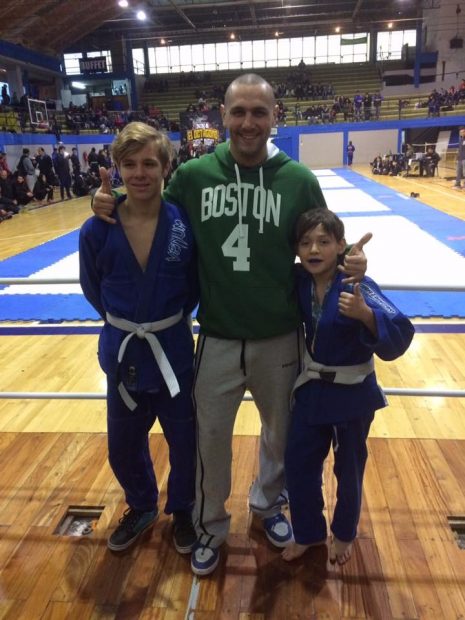 La jornada comenzó a las 10 de la mañana y el primer competidor en salir al tatame fue Silvio Chaparro (11 años). En las categorías infantiles, no se puede someter al rival, solo se lucha a puntos, aunque eso es anecdótico, ya que ganen o pierda, siguen luchando. La primera lucha la perdió y la segunda la empató.