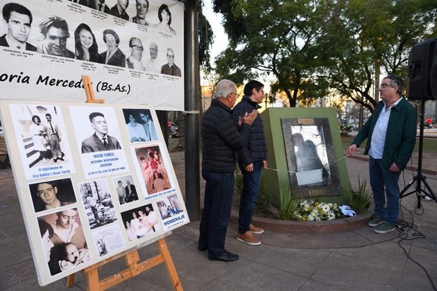 El descubrimiento de la placa donde se incorpora a Oscar como víctima fatal de la última Dictadura Cívico Militar fue en plaza San Martín donde se encuentran el resto de los mercedinos y fue a instancias de Guillermo y Gustavo.