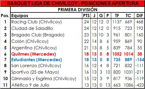 COLÓN (CH) 89: Rolandelli 25, L. Vero 22, T. Mesplet 17, Calderán 14, Artola 4, Scarano 3, Oroná 2, Cupayolo 2, Peralta, Fillia, Volonté. DT: D. Barrales