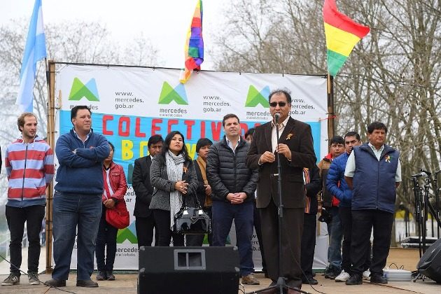Sobre el escenario tomaron la palabra el Sr. Severino Alberto, Presidente de la Colectividad Boliviana de Mercedes, luego hubo una reseña histórica a cargo del Sr. Julio Quevedo, Secretario de la mencionada colectividad y el Embajador Extraordinario y Plenipotenciario del Estado Plurinacional de Bolivia en la República Argentina, Santos Javier Tito Véliz. Por parte de la Comuna tomó la palabra el Dr. Juan Pablo López Baggio, Secretario de Gobierno quien estuvo acompañado por la Directora de Cultura, Lucía Capaccio, el Presidente del Concejo Deliberante, Matías Dematei, entre funcionarios y vecinos.