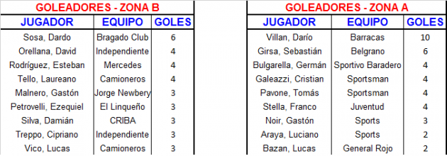 Belgrano (San Nicolás) 5: Sebastián Girsa (3), Ulises Bergez y Mauro Faeti