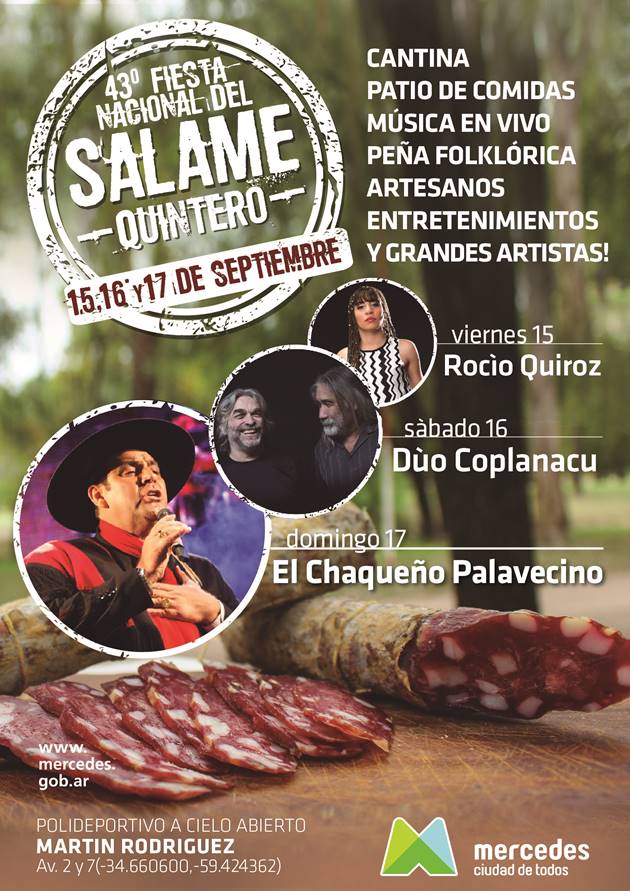 Rocío Quiróz y el “Chaqueño” Palavecino se suben al escenario mayor de la Fiesta Nacional del Salame. La Fiesta debió ser postergada por el grave pronóstico que finalmente se concretó durante el fin de semana con fuertes lluvias, vientos y estado de alerta por parte de Protección Civil. La decisión del Ejecutivo, en consulta con los distintos actores intervinientes. Compromisos de los artistas llevó a que deba también modificarse la grilla, pero, siguiendo el nivel de calidad e incluso despertando un renovado interés dado que lograron combinar fecha y traer a la ciudad a uno de los artistas más esperados: El Chaqueño Palavecino.