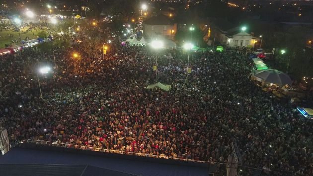 El cierre final fue con el Chaqueño Palavecino, que con un show de casi dos horas hizo vibrar a los asistentes. “Que intendente joven que tienen” le dijo a Juani Ustarroz al recibir los salames y le contó la historia de un enfermero de Chaco que lo conoce “le voy a decir a mi hermano que te dé el número así se hablan” le dijo al intendente para luego comentar que “tengo comida para rato” al ver las dos bolsas que recibió con salame mercedino y tras agradecer dijo “vamos a cantar un tema más entonces”, para que empezar otra chacarena que hizo bailar a todos.