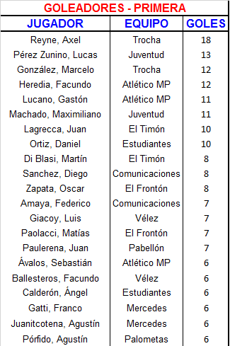 | Juventud | 1 | Lucas Perez Zunino |