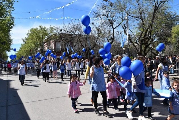 Este año el desfile lo abrió la Escuela Normal dado que cumple 130 años de vida, siendo uno de los primeras en el país. Fue así que su Directora Institucional la Lic. Claudia González se acercó al palco oficial y solicito la protocolar autorización que el Jefe Comunal respondió afirmativamente y así dieron inició al paso la larga delegación institucional que, al pasar frente al Palacio Municipal, lanzaron globos azules al aire, como una manera de celebrar este gran aniversario que cumplen.