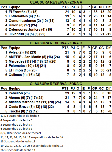 Sólo las primeras cuatro fechas del torneo de Reserva de la Liga Mercedina se jugaron en forma completa. Luego, incesantes suspensiones o no programaciones por jornadas que se jugaron entre semana, hicieron que el número de partidos postergados sea alarmante en un certamen al que no se le da la importancia suficiente y que siempre termina con menos partidos de los que se deben jugar de acuerdo a lo que indica el fixture a principio de año.
