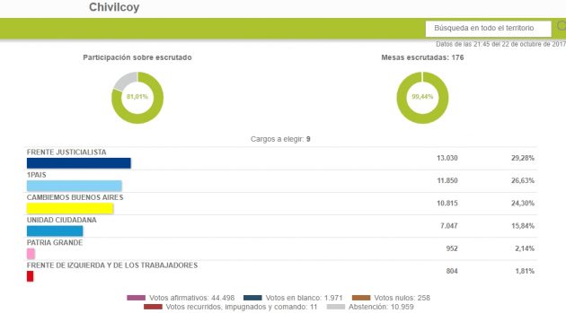 Ganó la oposición, es decir, Cambiemos, contra el oficialismo de Unidad Ciudadana reiterando lo sucedido en las PASO: