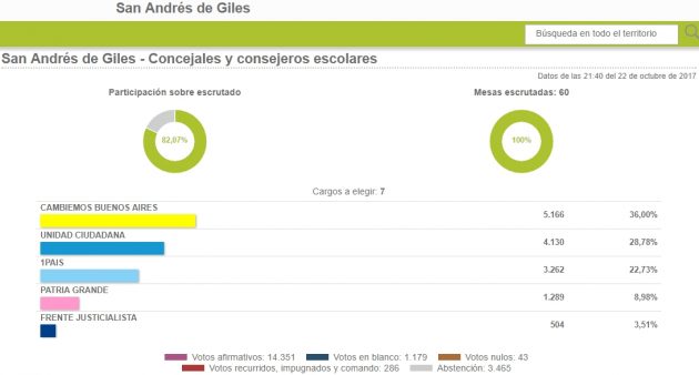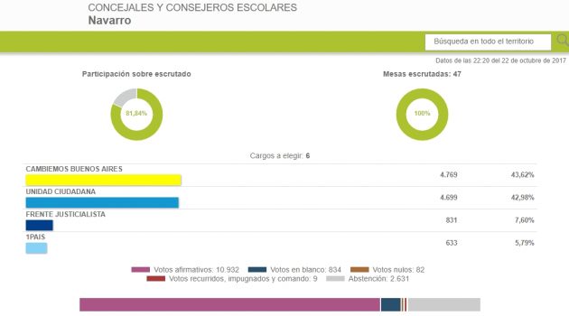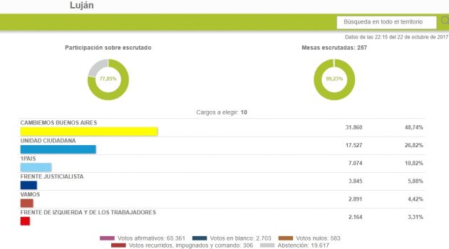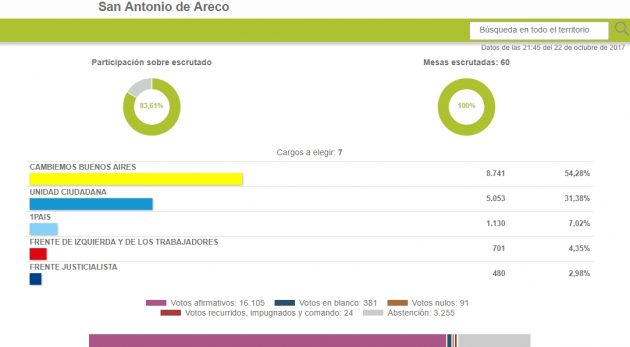 Acá es el lugar donde el randazzismo metió el batacazo. Le pagó al oficialismo del massismo. Tercero quedó Cambiemos y cuarto Unidad Ciudadana. Randazzo, en su «patria chica», logró salir victorioso.