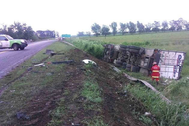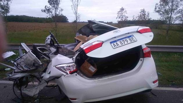 Producto de la violenta colisión el camión se despista hacia su banquina, derribando el guardarrail volcando sobre su lateral derecho y cayendo sobre la zona de préstamo próxima al lecho del arroyo. En tanto el Toyota Corolla, totalmente destruido, queda atravesado sobre la cinta asfáltica con su infortunado conductor dentro del habitáculo.