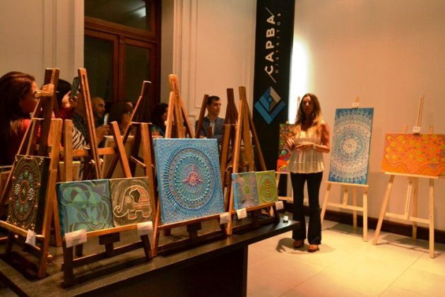 “La muestra se llama ‘a continuación’ porque no podía ponerle un nombre puntual, quieto. Continuamente estoy en movimiento. Empecé con los puntos, ahora estoy haciendo mandalas. Como me voy moviendo yo, también se van moviendo mis pinturas y lo que voy haciendo. Lo hago con el corazón y nunca está quieto, siempre siento cosas distintas”, agregó al darle la bienvenida a todos los presentes que el jueves pasado se encontraron en el Colegio de Arquitectos en la exposición que se podrá ver hasta finales de noviembre en la sede de la avenida 30, entre 23 y 25.