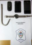 Con los resulta dos positivos de las investigaciones realizadas, tras la solicitud de “orden de allanamiento – secuestro y detención” respectiva, en domicilio de calle 511 e- 510 y 512 de la localidad de Gowland, donde reside uno de los autores, también se incautaron teléfono móvil, reloj marca Kevingston, ambos identificados por los asaltados, siendo elementos de prueba.