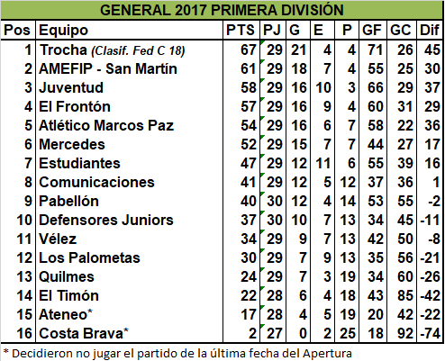 Cambios: Ezequiel Avelar por Franco Pérez, Francisco Silvestre por Pablo Gorocito y Franco Gatti por Francisco Bomaggio en Club Mercedes. Nicolás Ramírez por Rodrigo Di Mateo y Sergio González por Sergio Pereyra en Trocha.