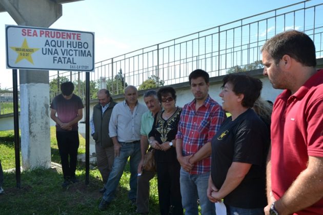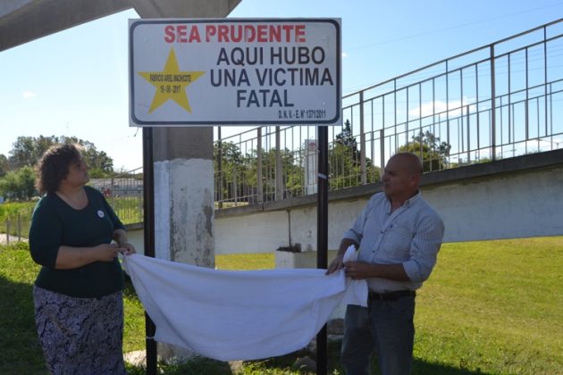 Promediando la tarde del domingo, las Estrellas Amarillas Mercedes y familiares y amigos de Fabricio Machicote se encontraron a la vera de la Ruta Nacional N° 5, debajo del puente peatonal previo a la rotonda de ingreso a la ciudad. Allí, los padres de Fabricio descubrieron la señalética vertical que recuerda al joven que tuvo un siniestro vial hace tres meses y a causa de éste falleció.