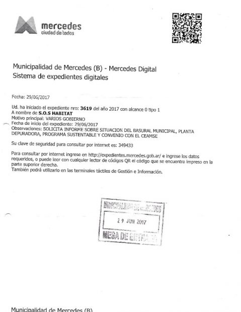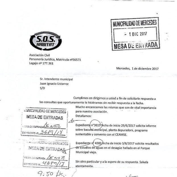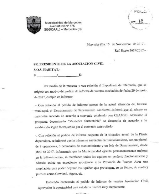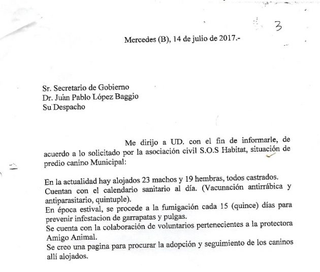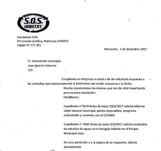 Por SOS Hábitat – Ante diversas situaciones uno de los deberes más importantes y concurrentes de la asociación es el pedido de informe sobre hechos, convenios e instalaciones de nuestra ciudad a las secretarias municipales correspondientes como lo es el refugio canino, el predio del basural, la planta depuradora, el convenio con el CEAMSE y el programa sustentable.