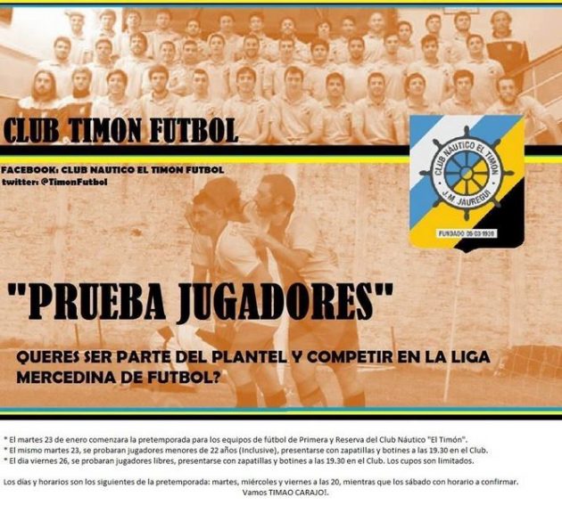 El Club Náutico El Timón comenzará la pretemporada con los equipos de Reserva y Primera División. Ese mismo día se estará realizando la prueba de jugadores menores de 22 años (inclusive) y el viernes 26 lo podrán hacer los jugadores libres.