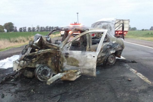 En horas de la madrugada de este viernes 26 de enero, se produjo un violento choque entre un automóvil y un camión, y posterior incendio del vehículo de menor porte, a la altura del km 131,800, de la ruta nacional 5, en jurisdicción del partido de Suipacha. El conductor del auto es de Chivilcoy y el del camión de Junín.