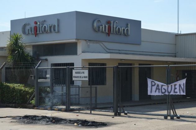 Durante la jornada de este lunes un grupo de trabajadores de la empresa Guilford llevó a cabo un nuevo reclamo para que se regularice su situación laboral. A la fecha no se ha logrado un encuentro fructífero entre la empresa y los trabajadores. Se les debe segunda quincena de diciembre, enero y primera de febrero, además de las vacaciones.