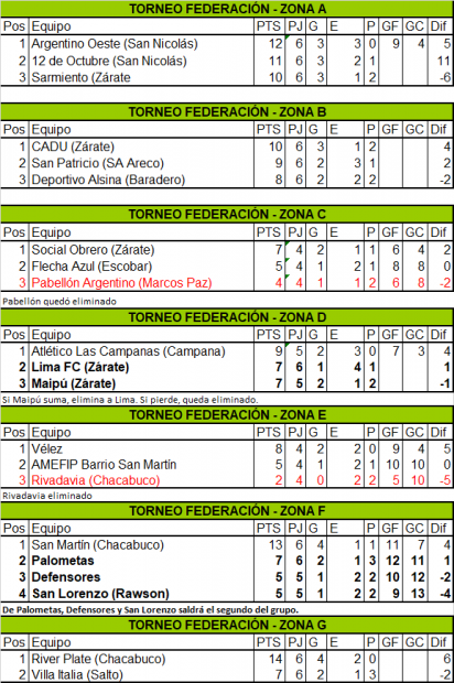 El otro lugar que resta ocupar es el segundo puesto de la Zona D. Con Atlético Las Campanas ya clasificado, la pelea está entre Lima FC y Maipú, ambos de Zárate. Maipú visita al líder de la zona este lunes desde las 17 y con un punto ya pasa de fase, mientras que la derrota lo elimina. Por su parte, la victoria a los de Campana los posiciona en el tercer lugar junto con Argentino Oeste y Vélez.