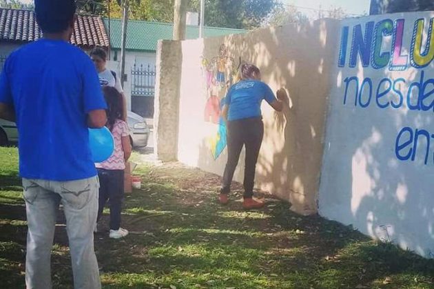 En la tarde del sábado arrancaron a pintar para concluir el 2 de abril con un encuentro familiar con globos azules y niños y niñas jugando en los distintos espacios de la plazoleta.