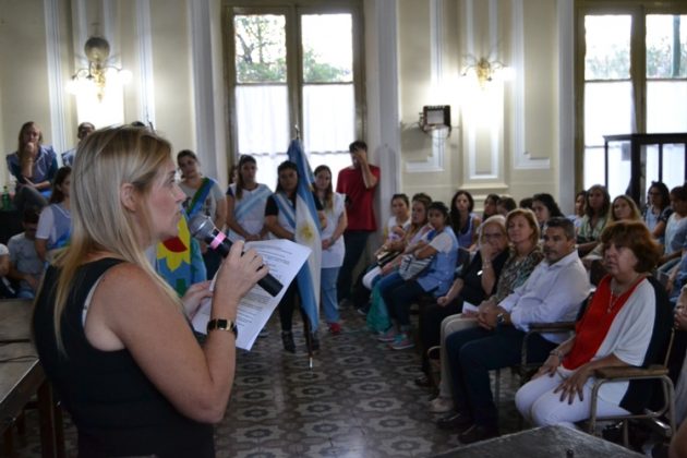 En sus palabras de apertura, la Lic. González destacó la historia institucional de una Escuela Normal que en el mes de mayo cumple 131 años y que como unidad académica cuenta con los cuatro niveles educativos. En sus palabras la directora enfatizó en el ideario de la institución desde la dirección del profesora Vergara en los años de su fundación, y particularizó en la relevancia de la formación de formadores. Es así que dio la bienvenida especial a los nuevos estudiantes del nivel superior que comienzan los Profesorados de Nivel Inicial, Nivel Primario y de Biología, Física y Química.