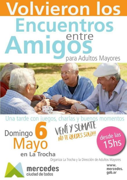 La Dirección de Adultos Mayores vuelve con los Encuentros entre Amigos. El domingo 6 de mayo, a partir de la hora 15, en el Centro Cultural La Trocha, será la primera actividad del año de este tipo que se reiterará una vez por mes. Adelantaron que habrá rondas de mates, juegos, charlas y sobre todo «buenas compañía», y en esta ediciónse sumarán a la fiesta de la presentación del tren turístico.